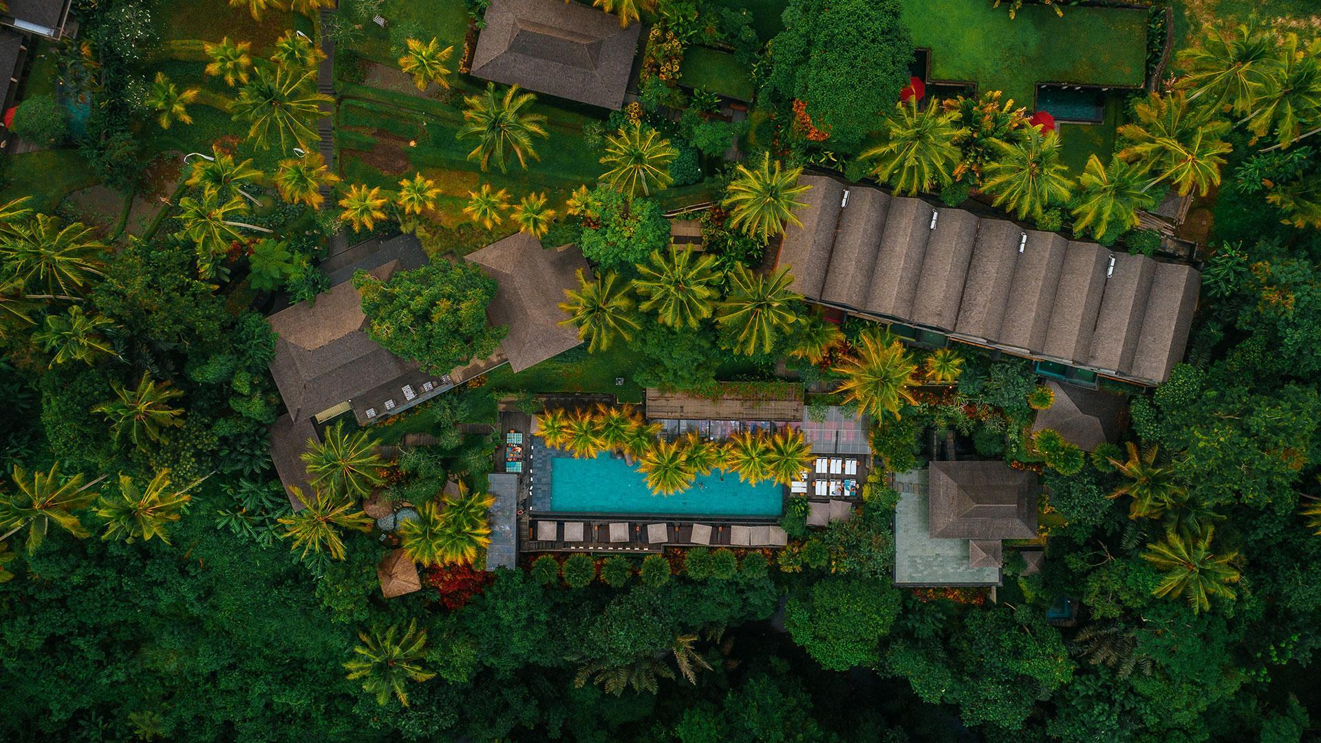 Chapung Sebali is situated high above the Osh river over the dramatic views of Bali’s lively jungle and positioned among the lush wilderness and rice fields, ten minutes north of Ubud.