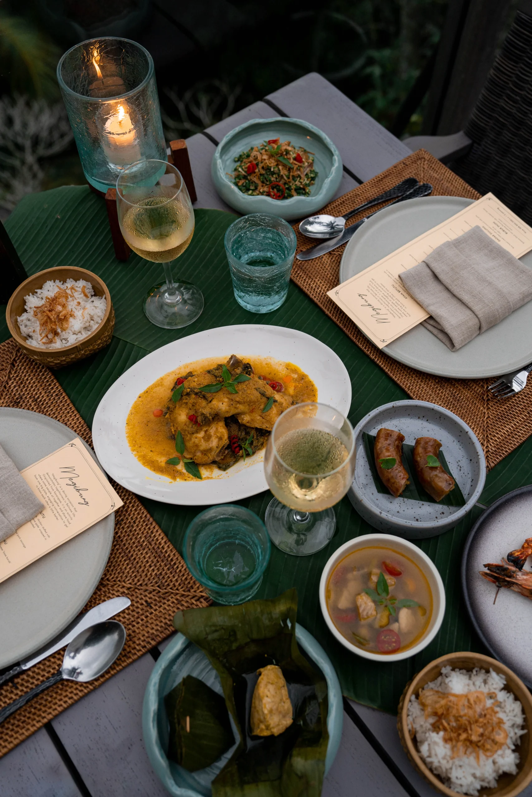 As you dine and the sun sets over the Ubud valley, be captivated by graceful performances by local Balinese dancers, telling timeless stories of harmony and community. Rooted in the spirit of sharing and connection, this experience invites you to savor not only the food, but also the deep cultural heritage.